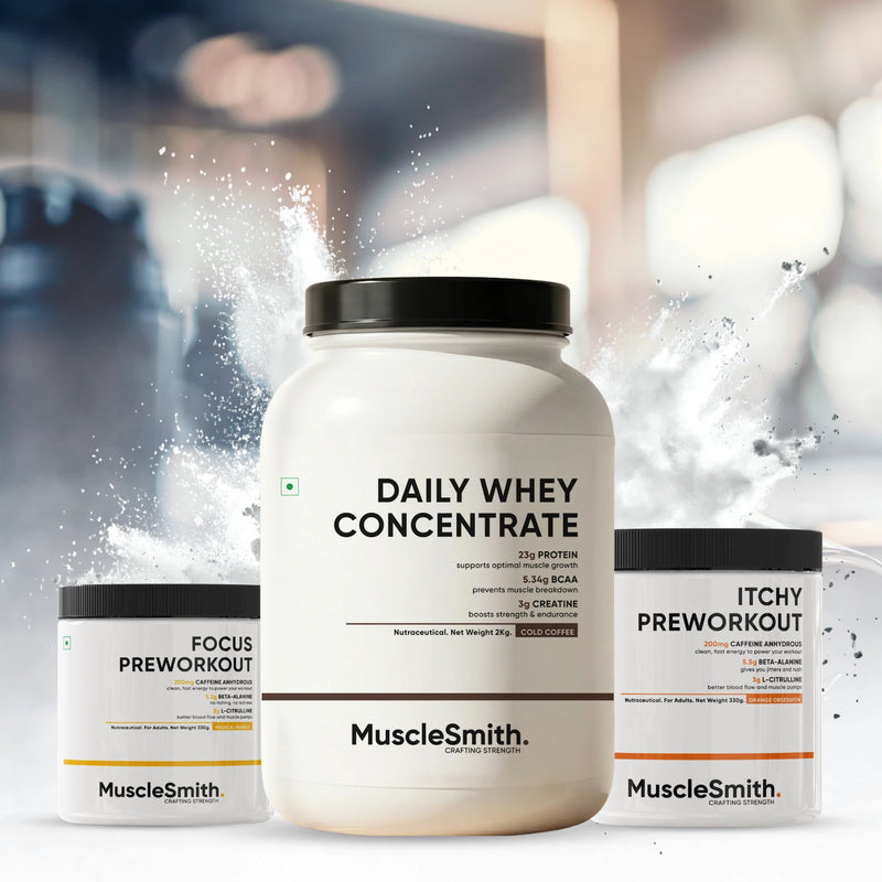 "Bought the combo pack and I'm impressed with the quality. The pre-workout gives a clean energy rush, and the whey mixes perfectly with zero clumps. MuscleSmith is definitely my new go-to."