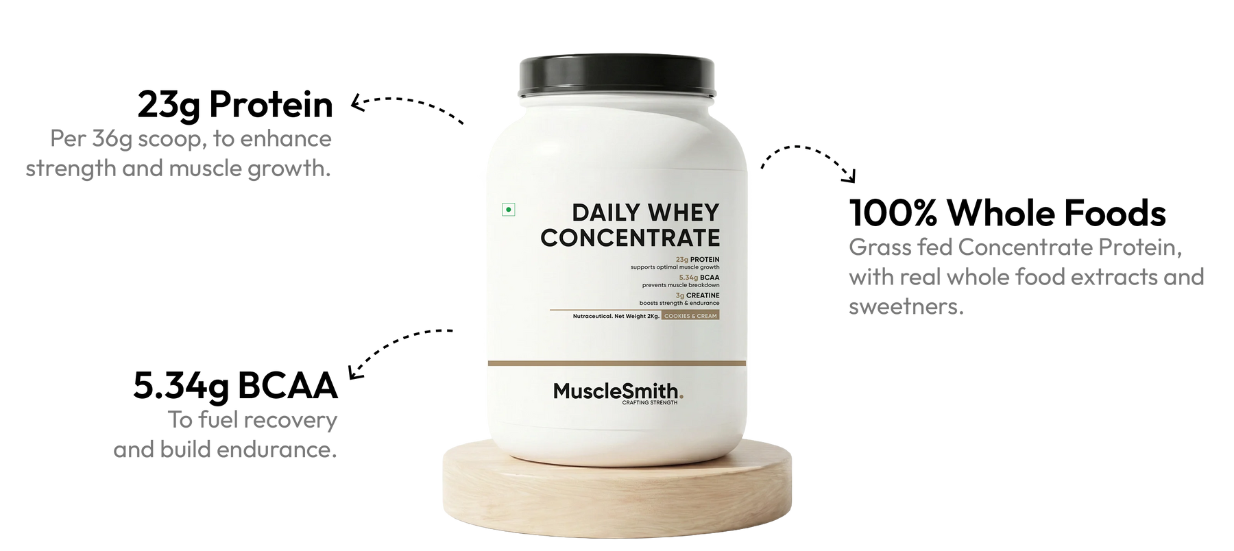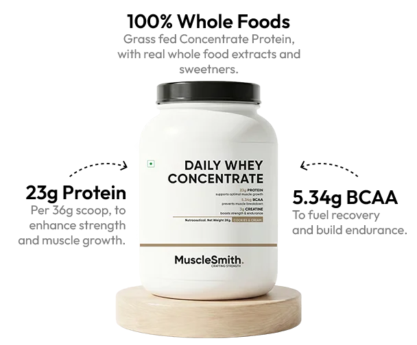 - Whey Protein Concentrate (23g): The foundation for muscle repair and lean growth after every workout.